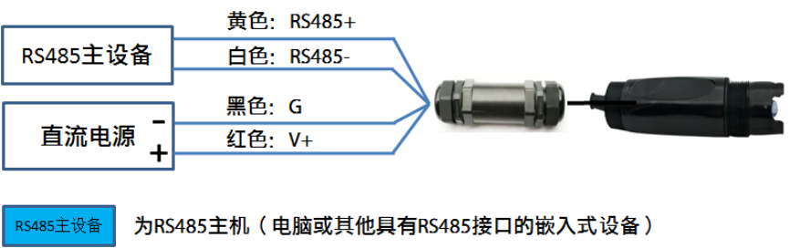 RS485接口型 Modbus協議 | 紅色(V+): 電源正 黑色(G): 電源地 黃色(T+): RS485+/A/T+ 白色(T-): RS485-/B/T-